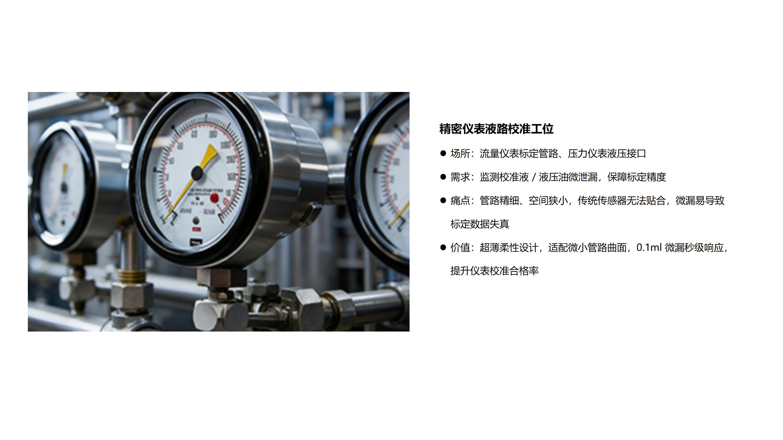 纳米银浆薄膜感应带技术的漏液监测系统在装备板块中的应用——精密仪表液路校准工位