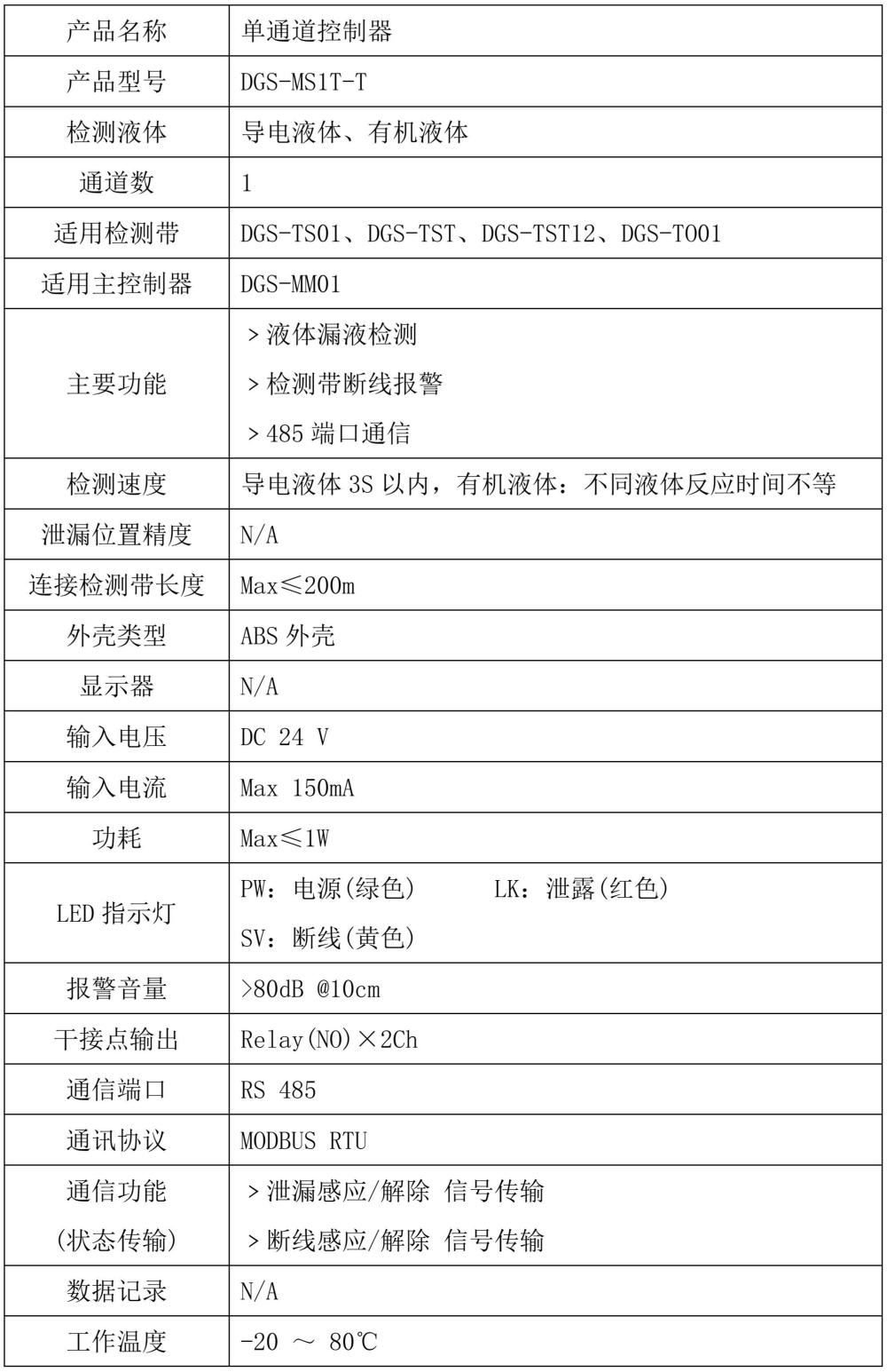 • 漏液监测子控制器 DGS-MD1C-L